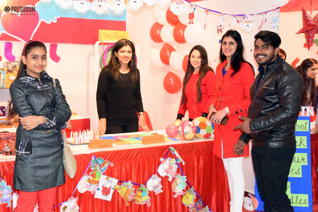 The gaily-decorated food stalls, thematic interiors, captivating activities like tattoo making, magic shows, exciting games like tambola and shooting, joy rides and many other adventure sports add shine and excitement to whole event. Add to it the dynamic dance performance by Presidians. Further, the gift distribution by Santa makes the event more gleeful for every visitor.